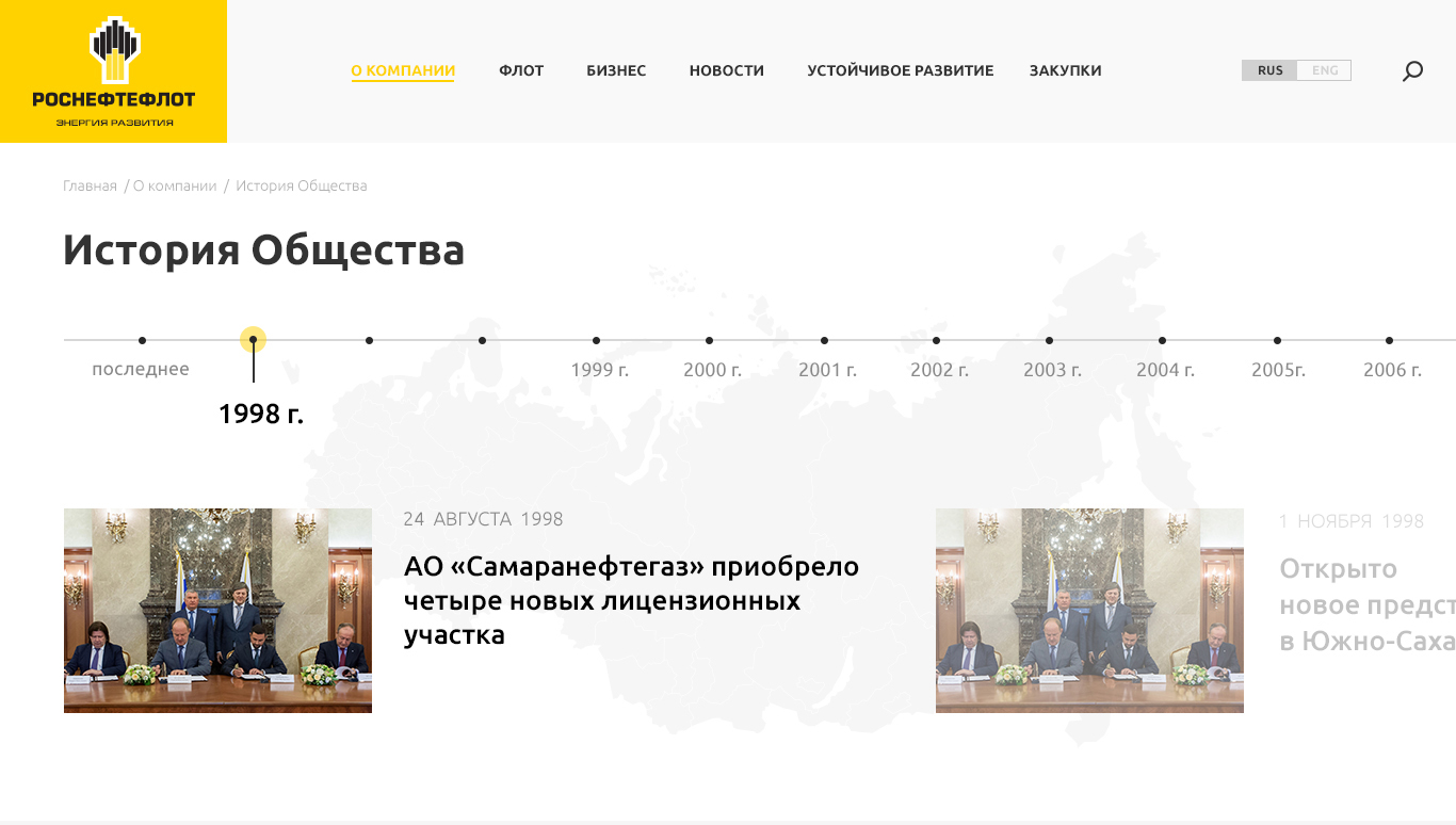Разработка корпоративного сайта «Роснефтефлот» была для нашей компании настоящим вызовом, так как стояли очень сжатые сроки по проекту, а ведь это была индивидуальная разработка. В итоге нам удалось запараллелить весь процесс разработки, создавая раздел за разделом от проектирования до программной реализации и наполнения контентом.