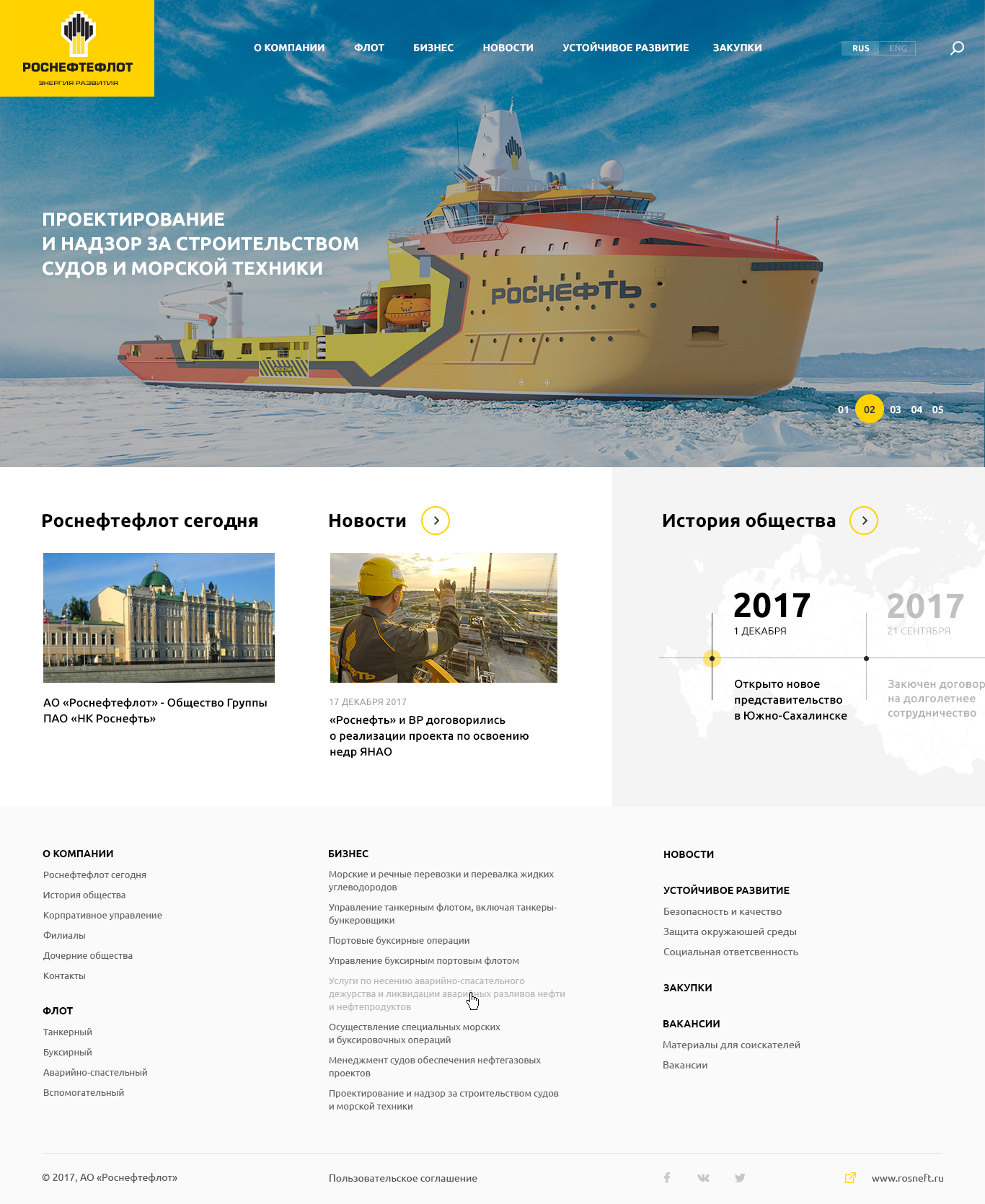 На сайте представлены полный каталог судов флота, новости компании и отрасли.
